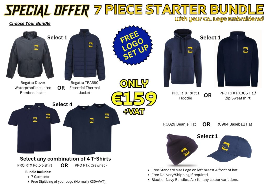 We are offering FREE Digitisation of your logo on all these bundles, plus savings on workwear.